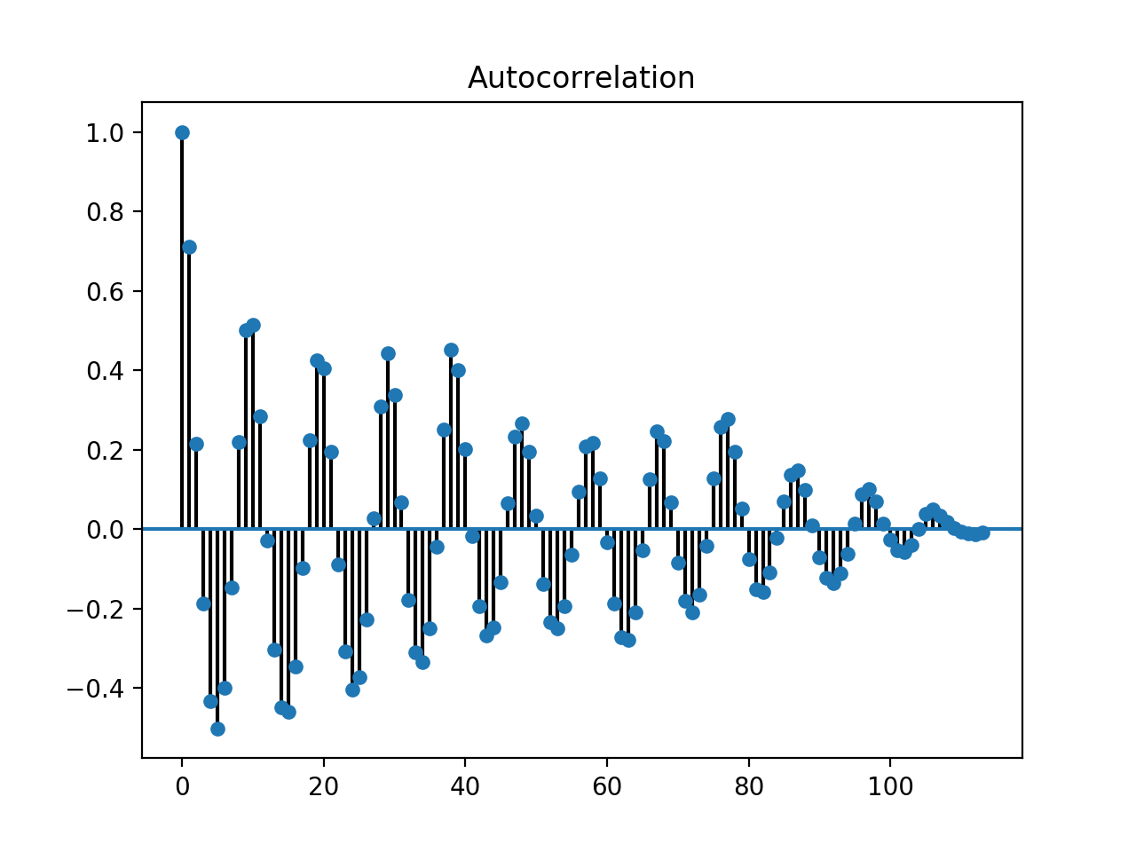 We can examine a time-series’ auto-correlation plot given the code above.